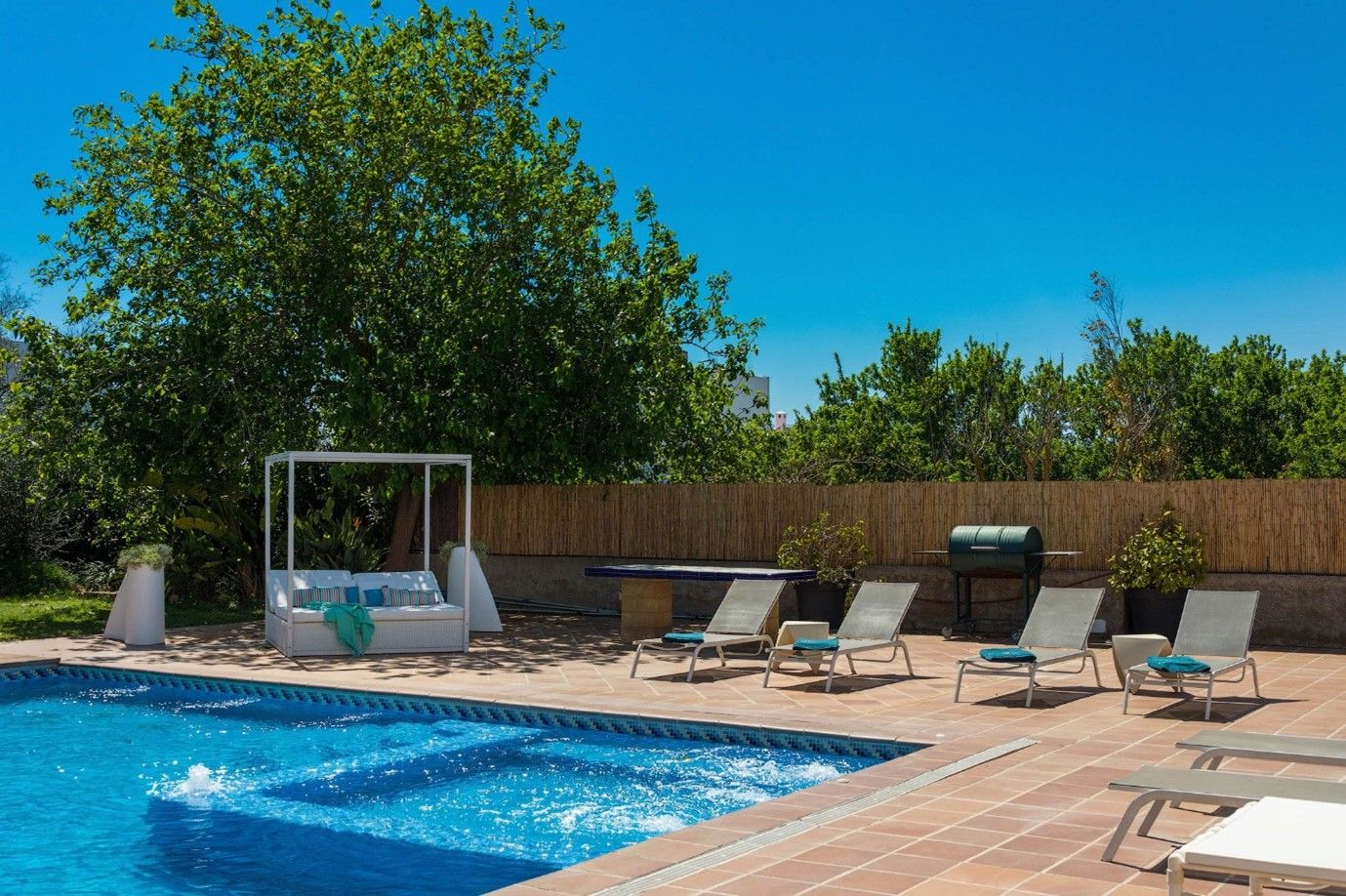 Esta casa dispone de piscina privada (8.00X8.00), televisión, televisión por satélite, jardín, mobiliario de jardín, plancha, chimenea, barbacoa, radio, terraza, terreno vallado, caja fuerte, DVD, balcón, exprimidor, hervidor de agua, secador de pelo, alarma, JACUZZI, acceso a internet (Wi-fi), nevera, congelador, lavadora, lavavajillas, cafetera, tostador, vajilla, utensilios de cocina, microondas, horno...