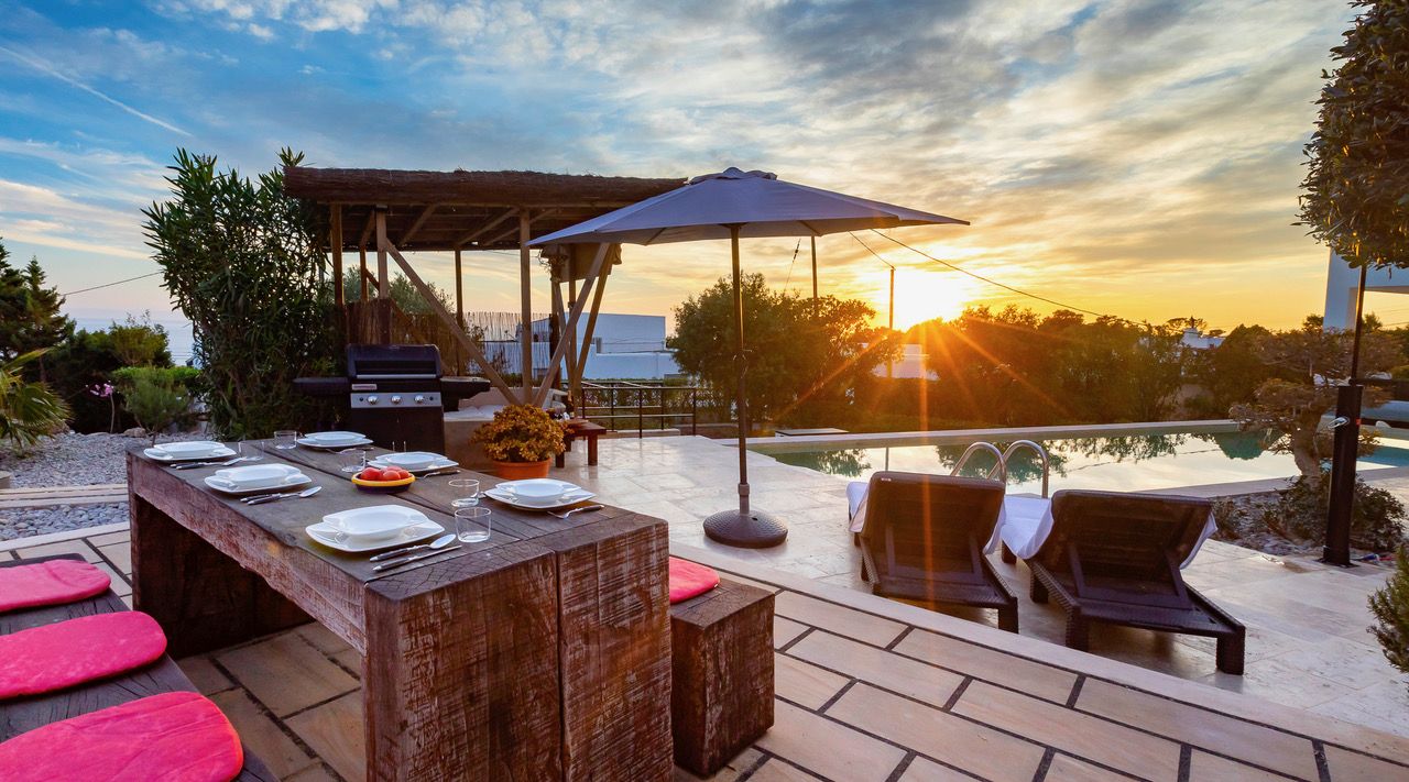 Alquiler turístico de vivienda vacacional con piscina (14 m de largo) para 8 personas con vistas al mar y a la puesta del sol, cerca de la playa Cala Codolar.