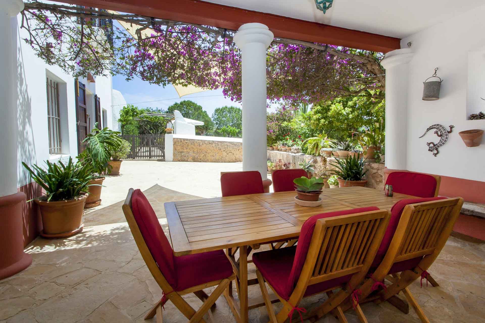 Es una casa de campo amplia, localizada en el entorno más rural y protegido de Ibiza. Vistas espectaculares al campo y a la montaña de Santa Inés, rodeada de naturaleza, árboles frutales y jardines repletos de plantas y vegetación mediterránea.