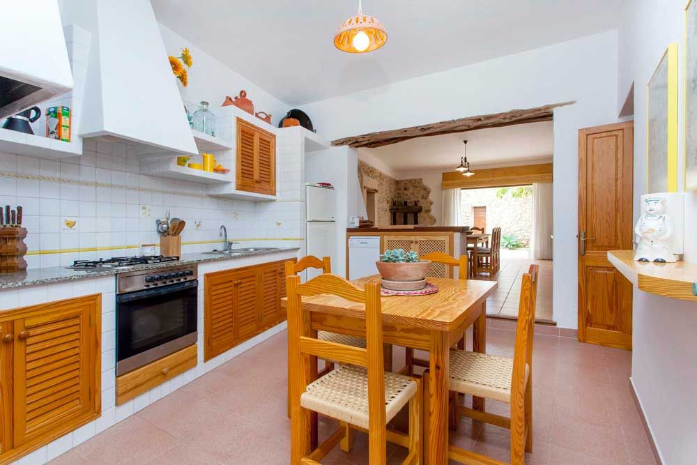 La vivienda consta de 4 habitaciones espaciosas con aire acondicionado, tres dobles y una individual, para las 7 plazas autorizadas. Salón acogedor con TV por satélite y WiFi y cocina-comedor totalmente equipada, ambos con chimenea. 3 baños interiores (2 con ducha, 1 con bañera).